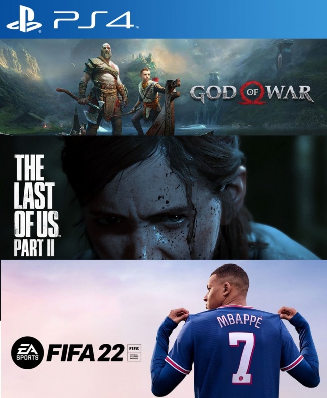 3 Juegos en 1 God of War mas THE LAST OF US PART II mas Fifa 22 PS4 (duplicado)